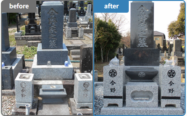 清掃業者では行えない石材店ならではのメンテナンス作業です。ここが一般的なお掃除代行と最も違う点です。