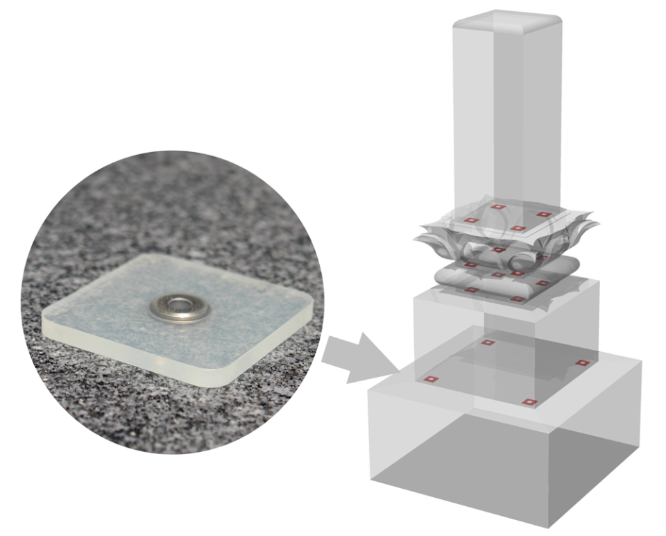 「泰震」の核となるのは、シリコーンゲル内部に封入されたステンレス製の「ダブルクッションプレート」3つの特許を取得しています。