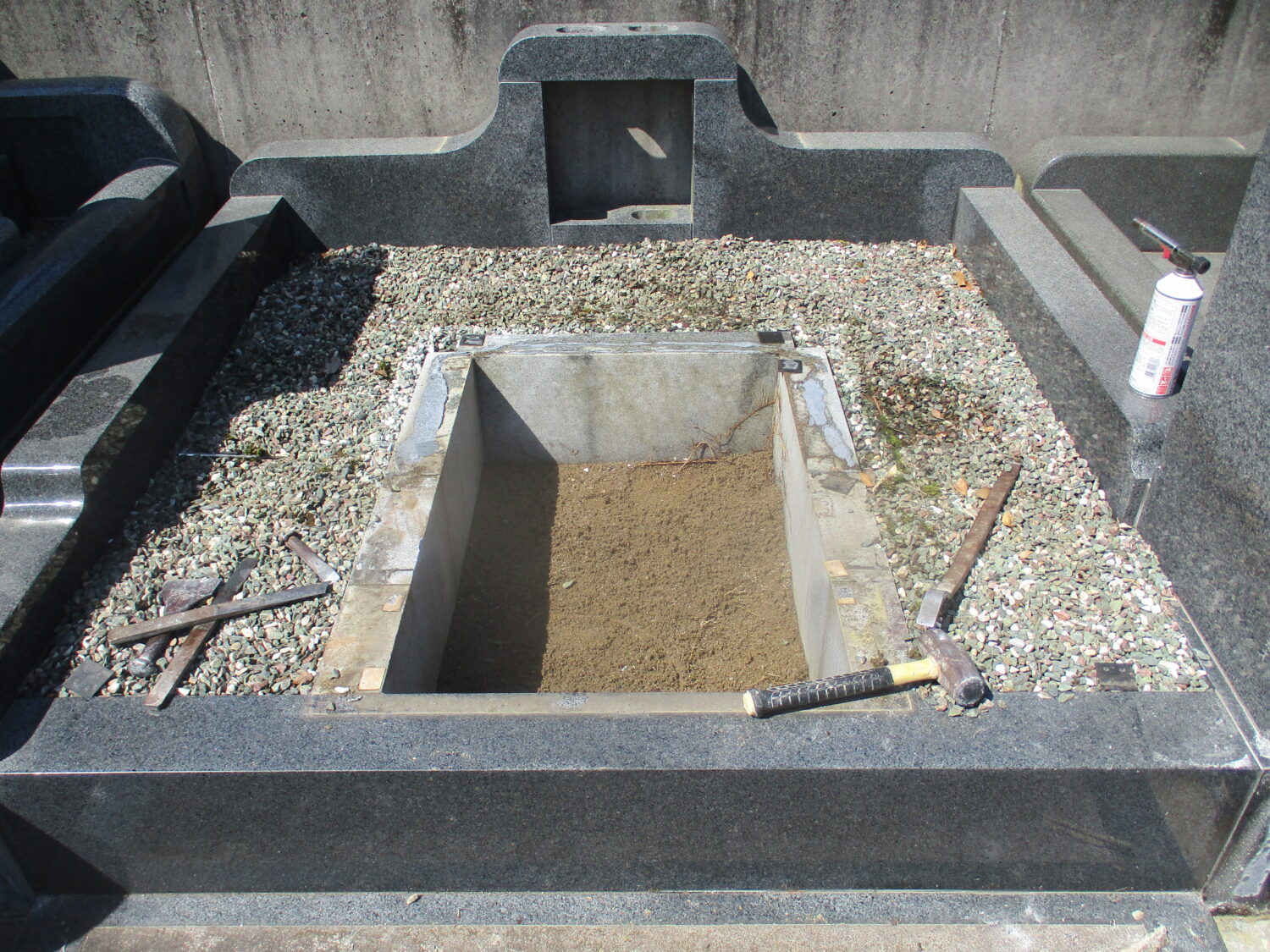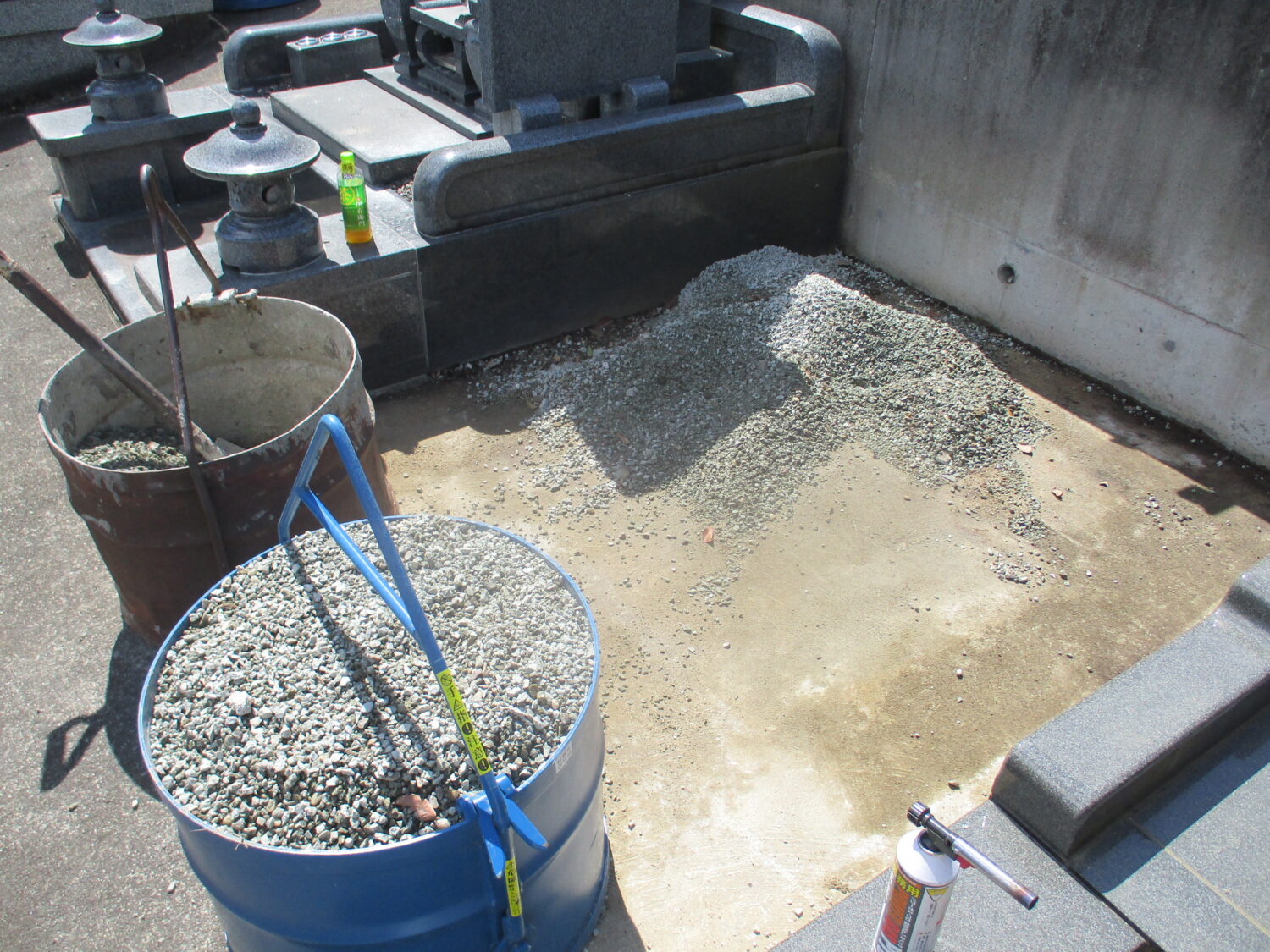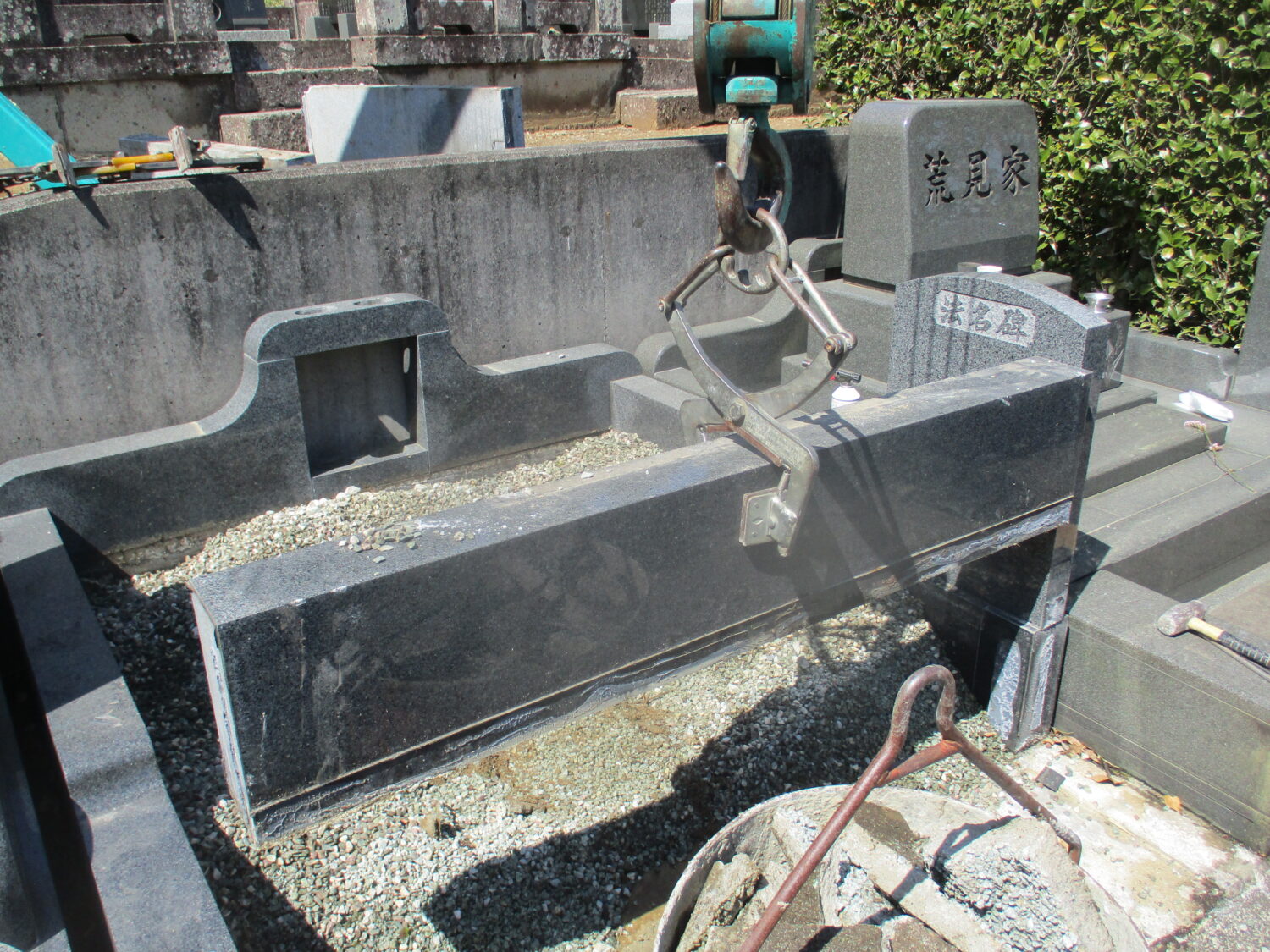 ・墓石・墓地外柵を解体処分、基礎コンクリートはお寺様のご指示で残しました。