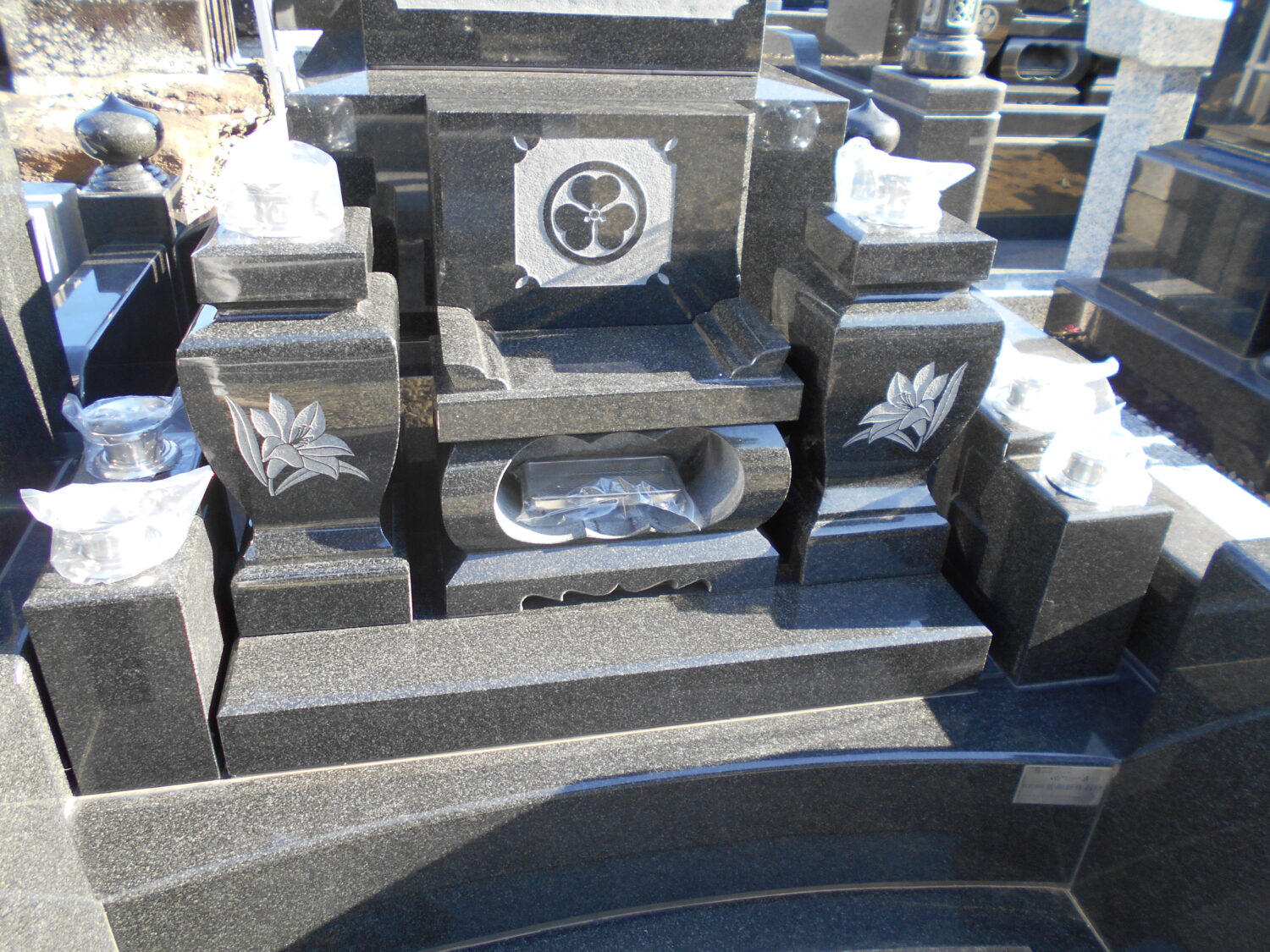 ・家紋、花立てに「ユリ」の図柄を彫刻しました。