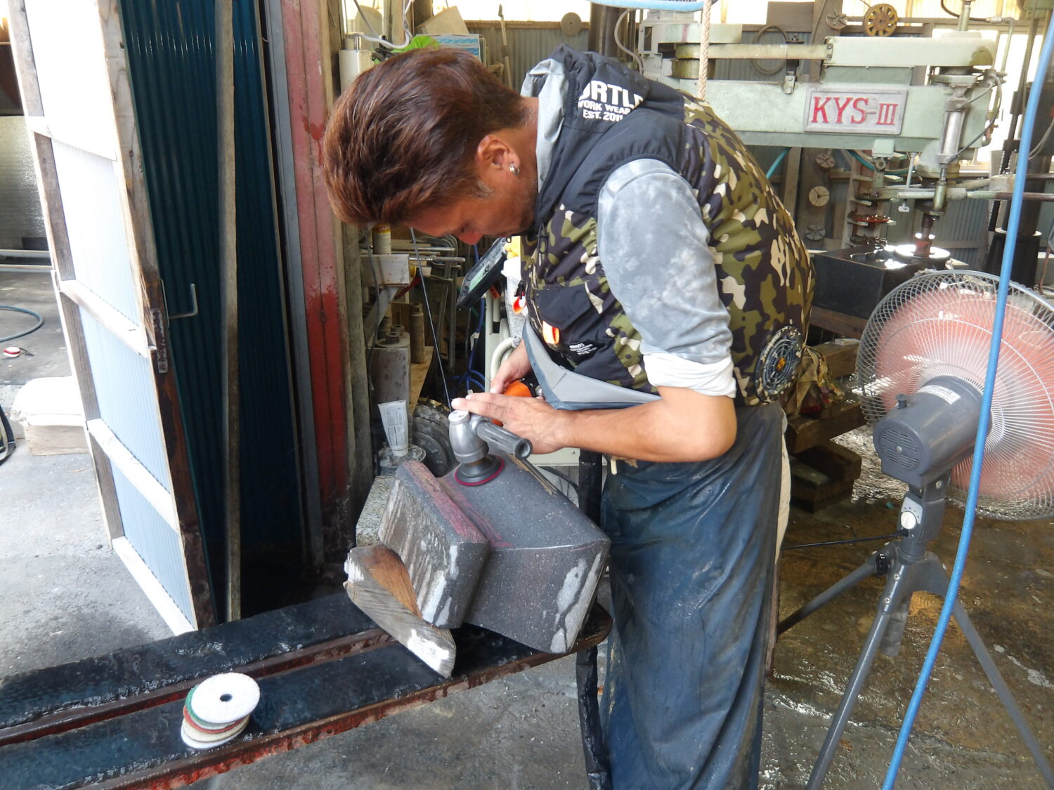 ・墓石、花立て石、香炉石、家紋台を解体後に弊社工場にて再研磨しました。
