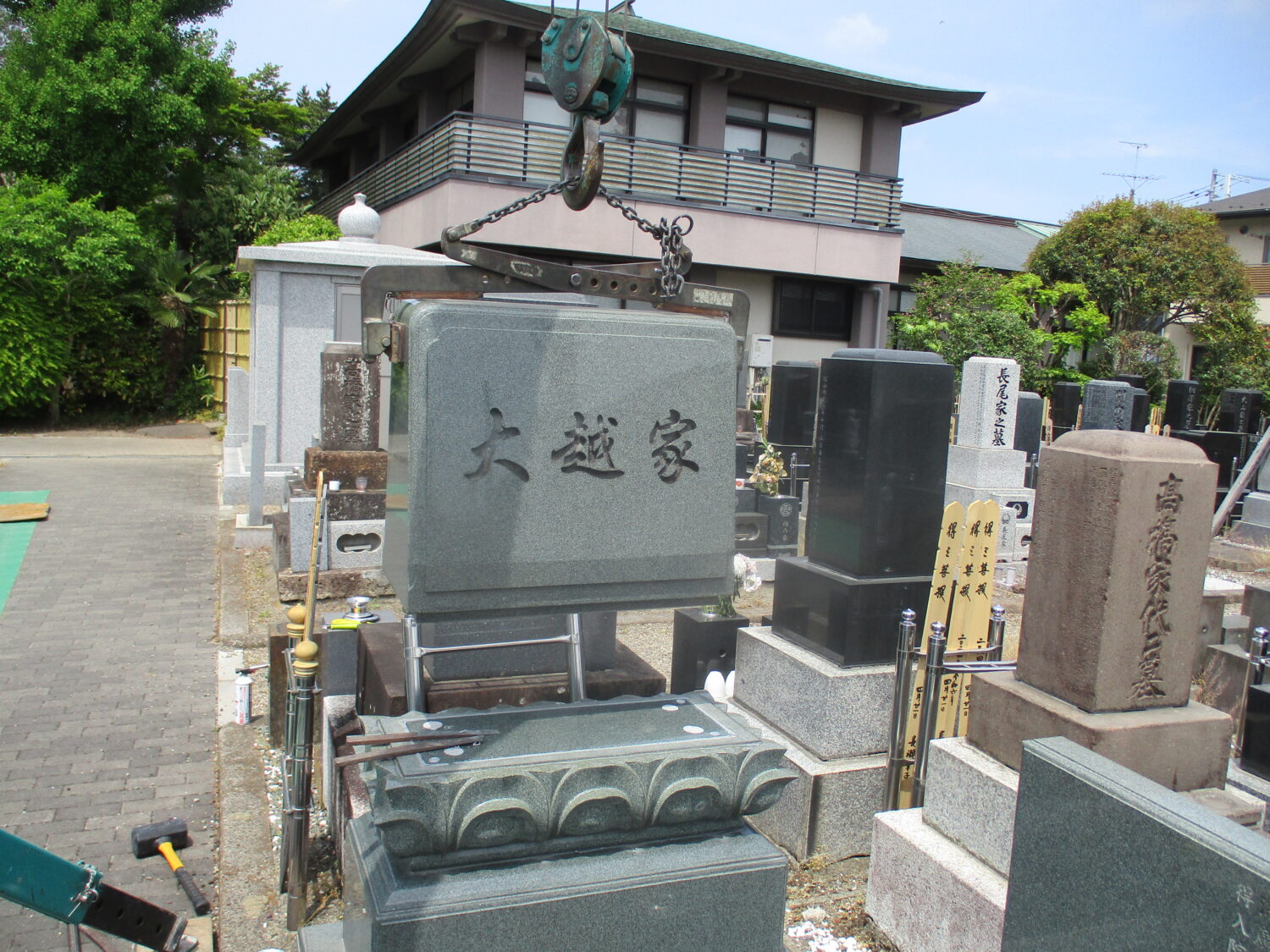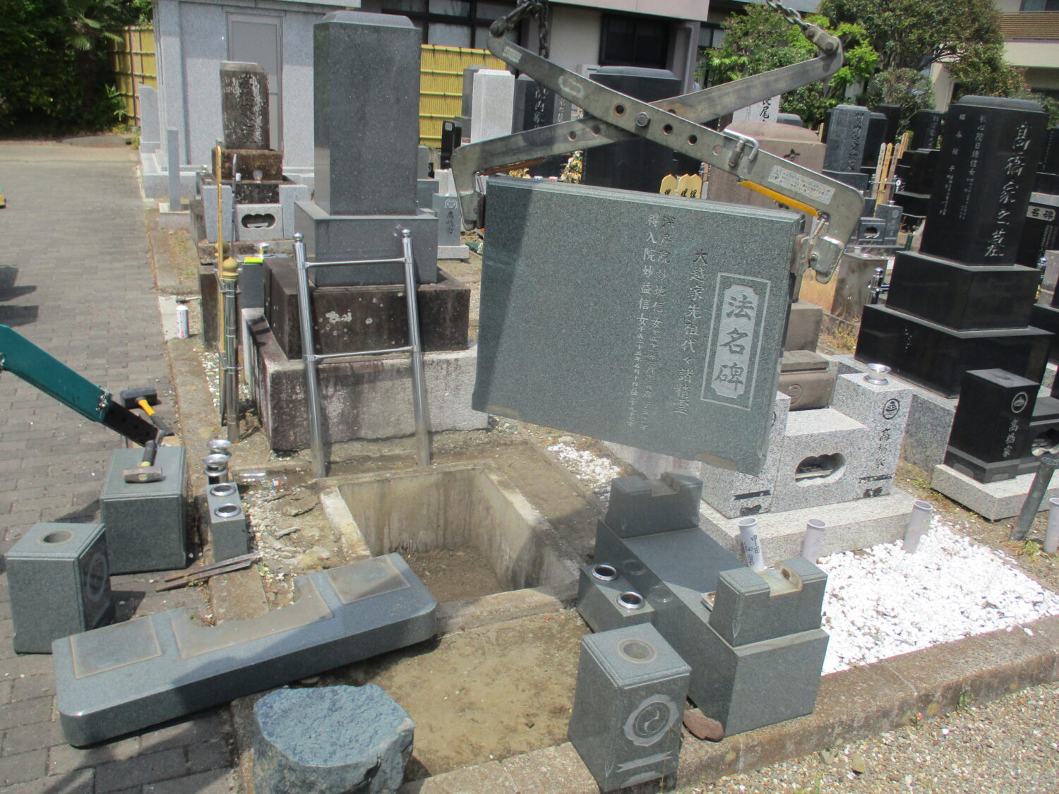 ・洋型墓石、法名碑、物上げ台を解体・運搬・処分しました。