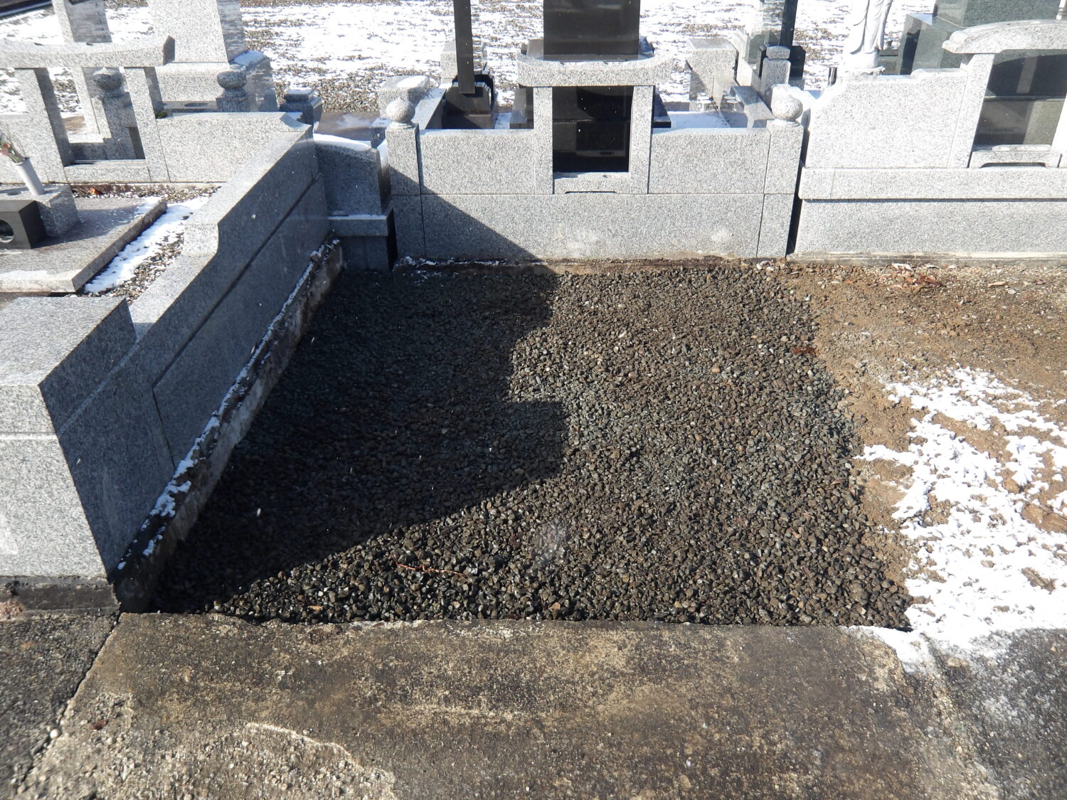 ・墓地外柵、納骨堂、基礎コンクリート、残土、残石を解体・運搬・処分しました。