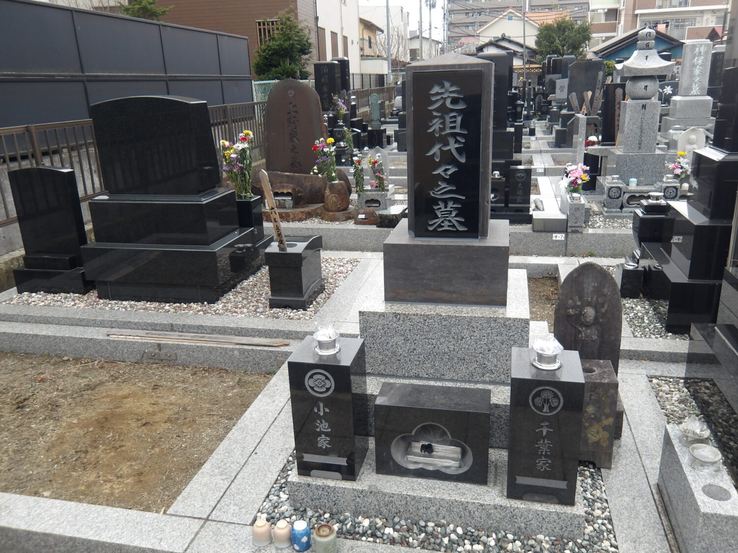 仙台市太白区 小池様・旧墓地を解体後に、寺院内の外柵付き墓地に墓石を移転建立しました。