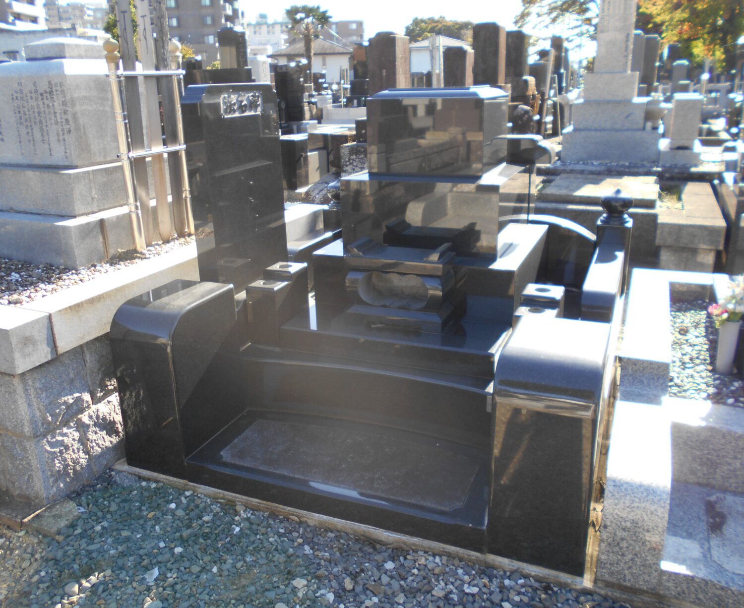 ・墓石竿石正面に黒御影石でプレート板石を貼り付けし、「先祖代々之墓」を彫刻しました。