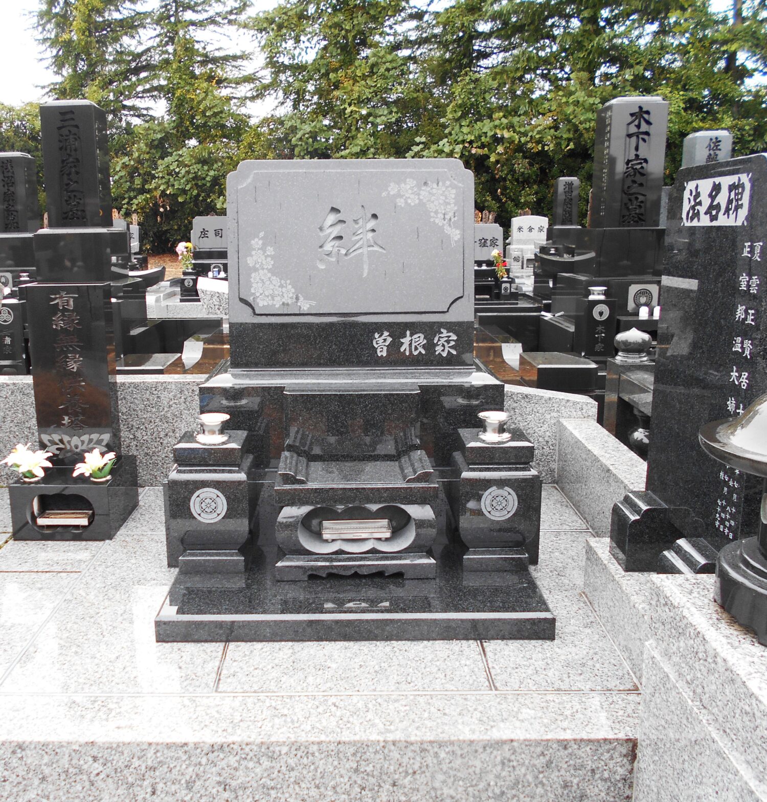 ・墓石正面に「絆」、「サクラ」の図柄を彫刻しました。