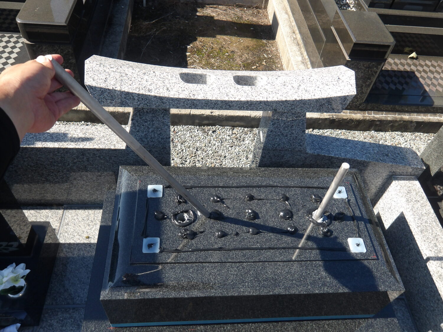 ・墓石に貫通耐震ステンレス棒2本を設置しました。