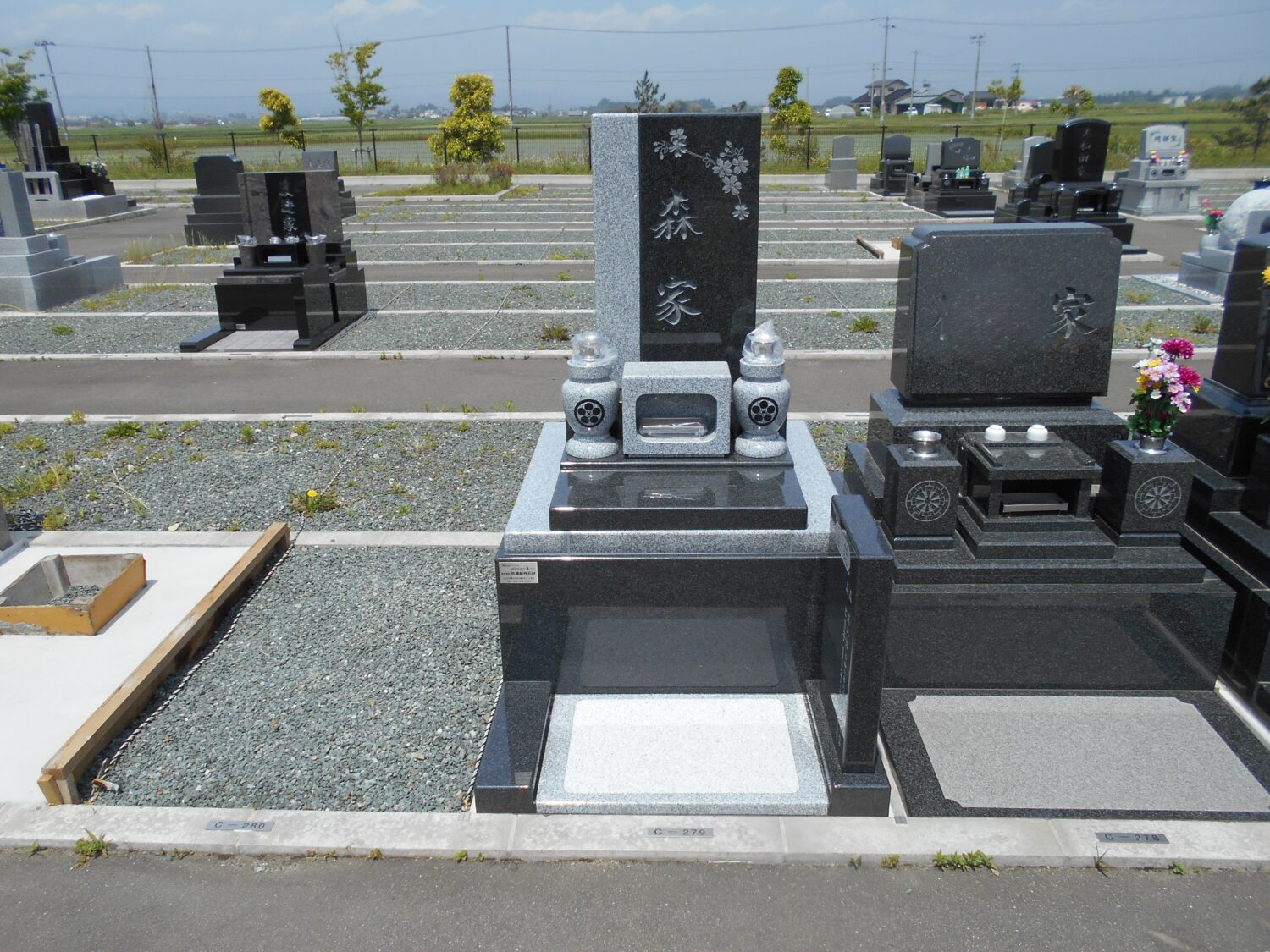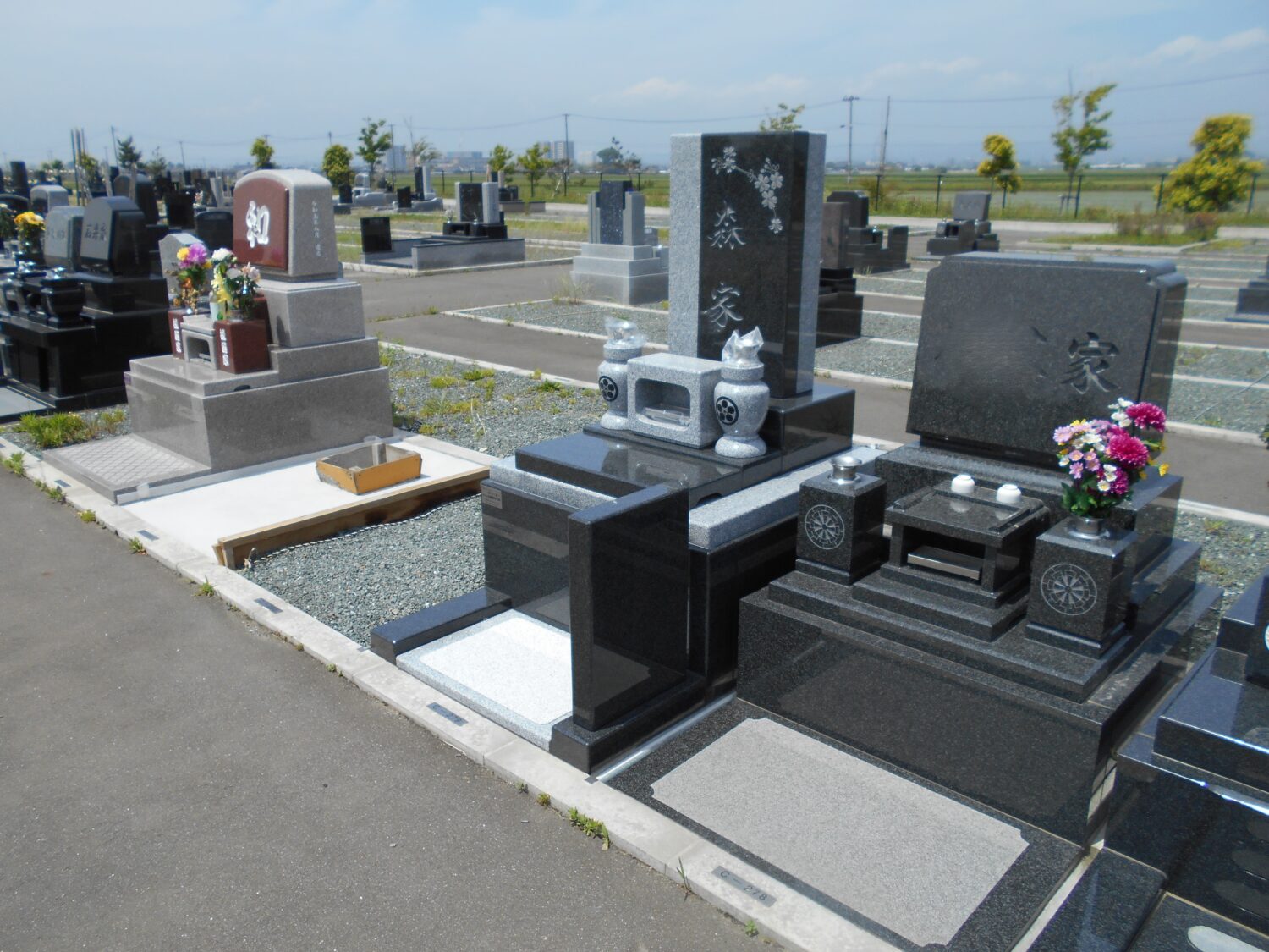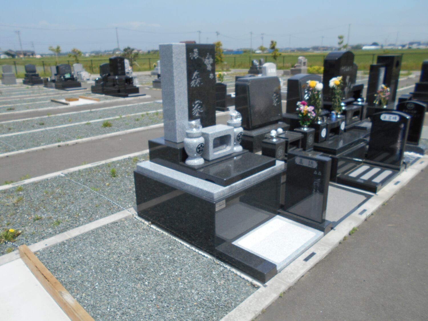 富谷市 瀬戸様・既存外柵内に和洋型墓石を建立しました。