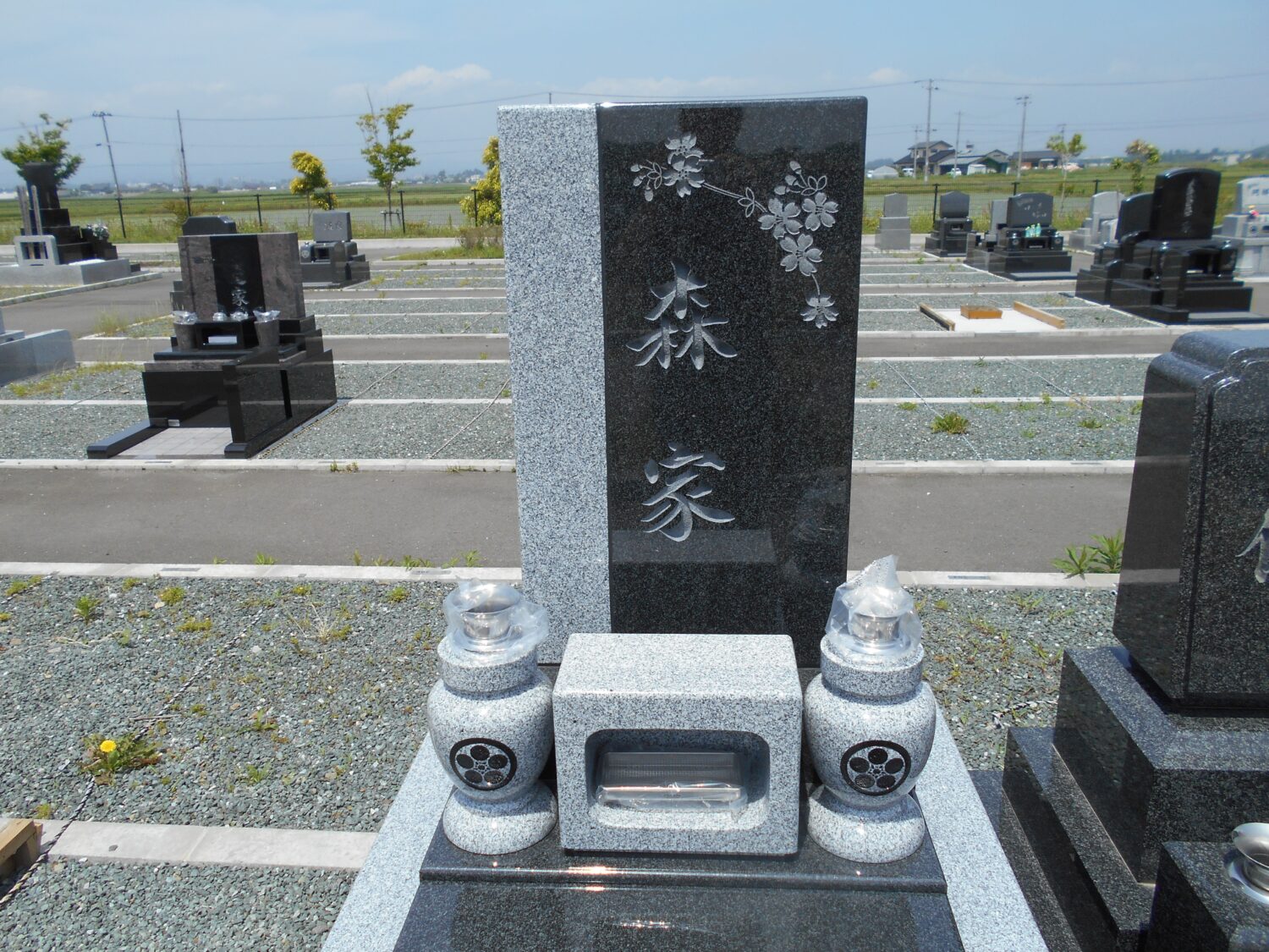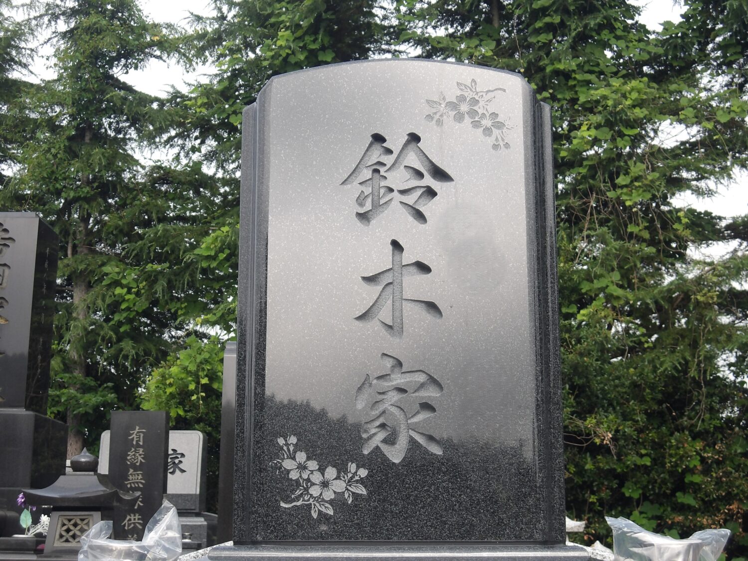 ・墓石正面に「サクラ」の図柄を彫刻しました。