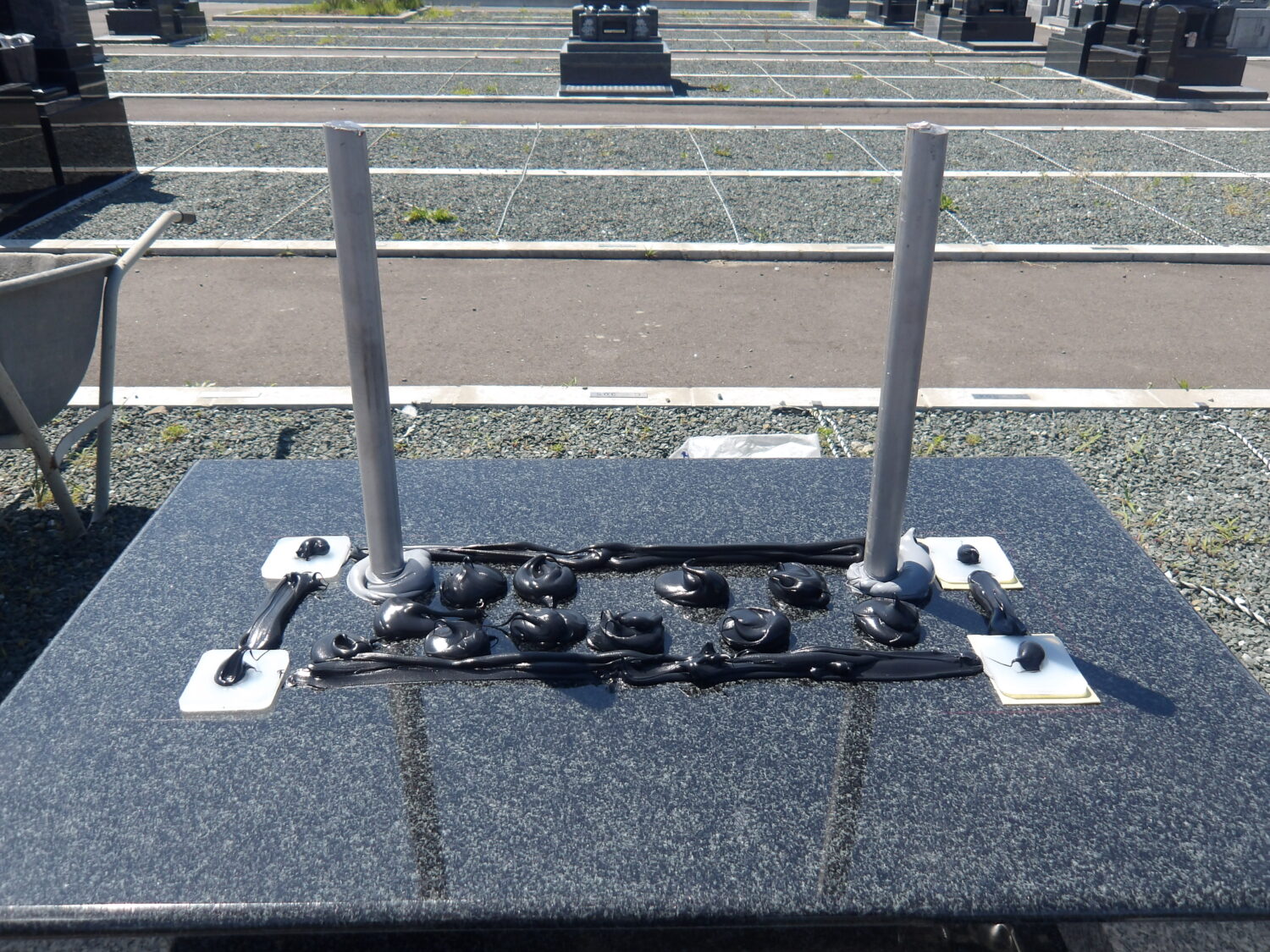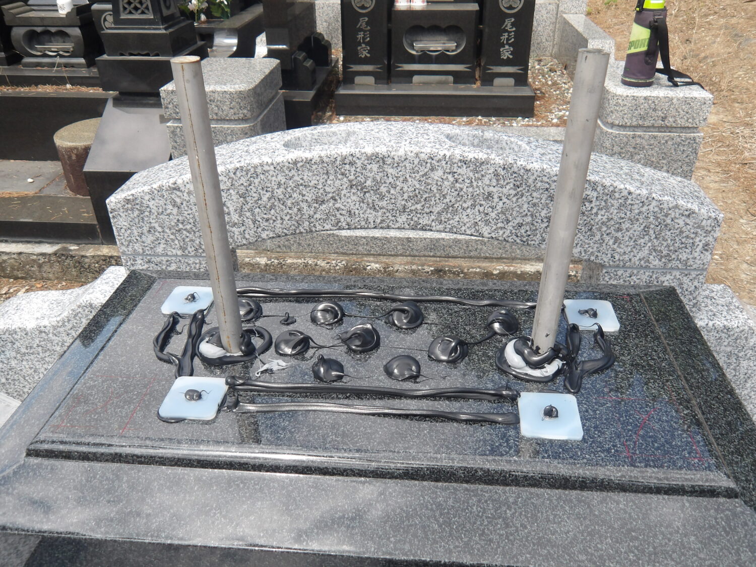 ・墓石に貫通ステンレス棒を2本設置しました。