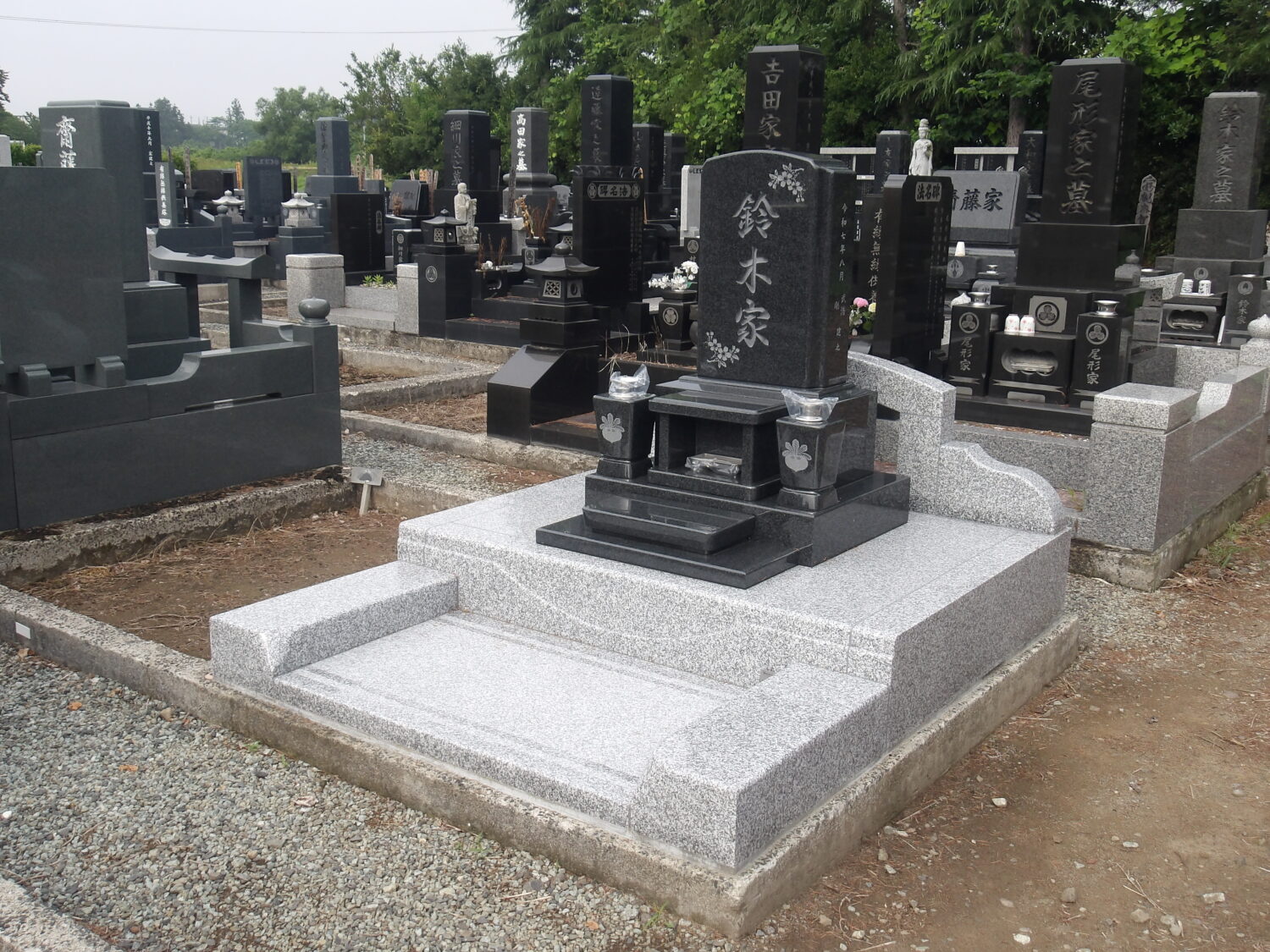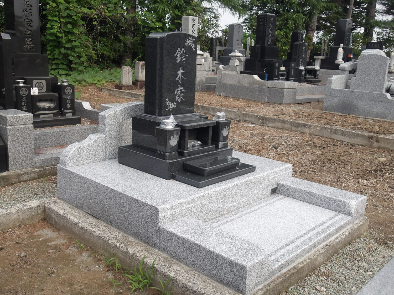仙台市青葉区 松木様・墓石竿石・上台をインド産M-10、その他を中国産新松山石を使用しました。